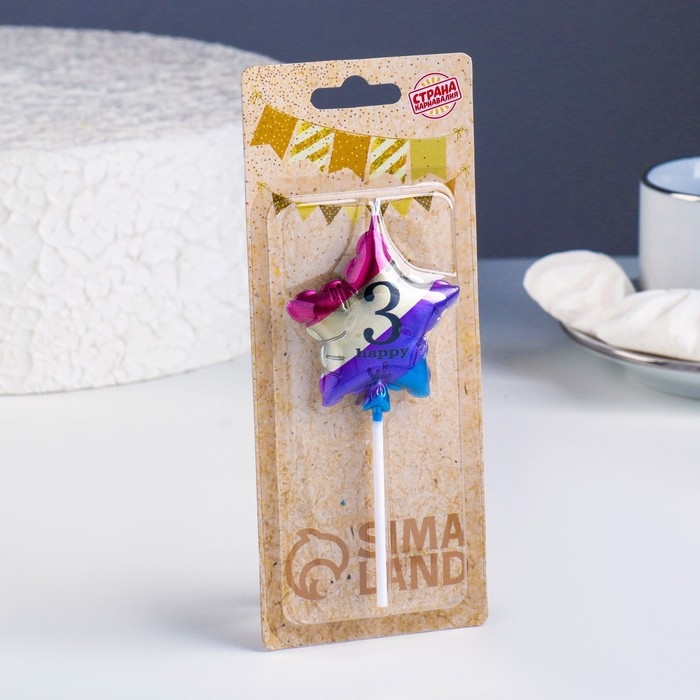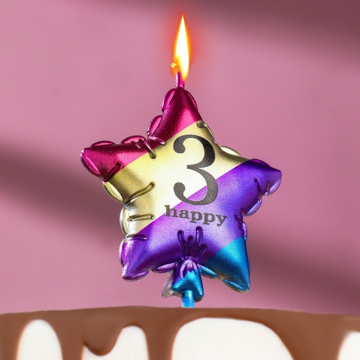 Свеча в торт "Воздушный шарик. Звезда", цифра "3", 5,5 см, разноцветная