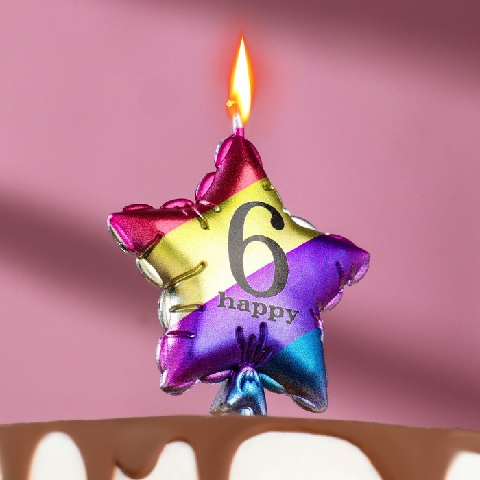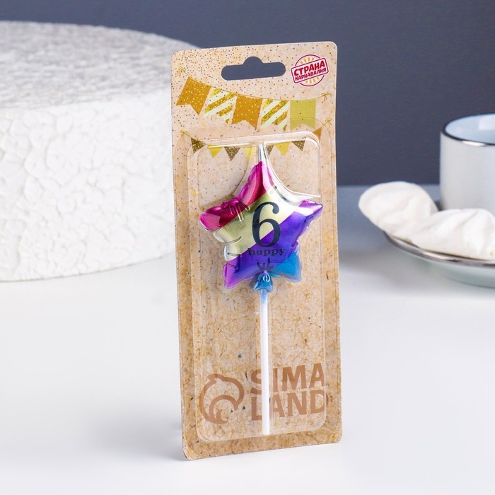 Свеча в торт "Воздушный шарик. Звезда", цифра "6", 5,5 см, разноцветная