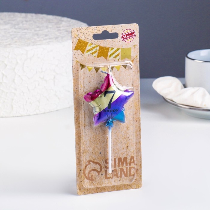 Свеча в торт "Воздушный шарик. Звезда", цифра "7", 5,5 см, разноцветная