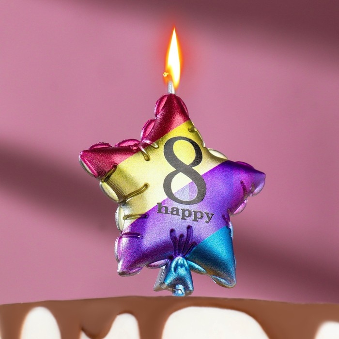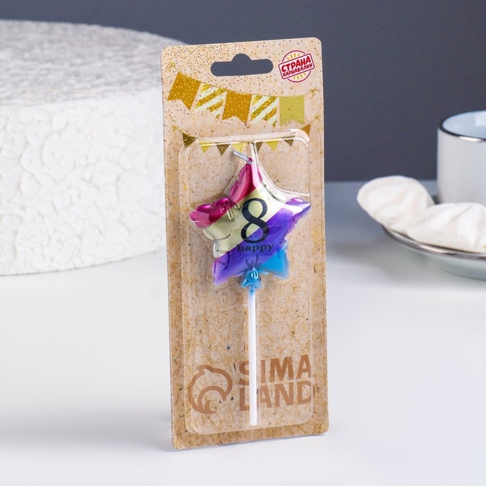 Свеча в торт "Воздушный шарик. Звезда", цифра "8", 5,5 см, разноцветная