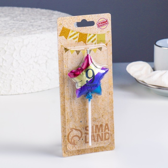 Свеча в торт "Воздушный шарик. Звезда", цифра "9", 5,5 см, разноцветная