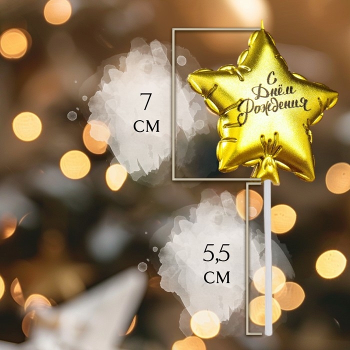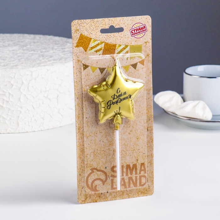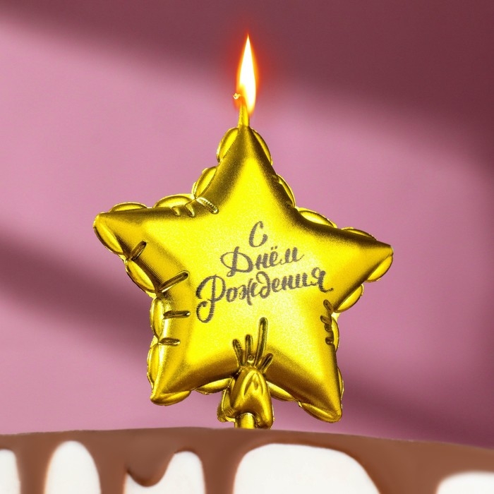 Свеча в торт "Воздушный шарик. Звезда", 7 см, золотая