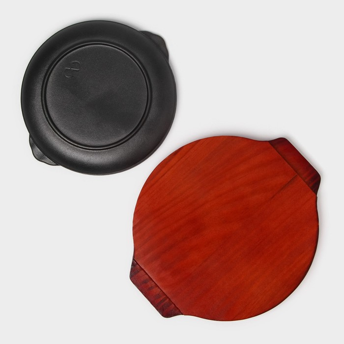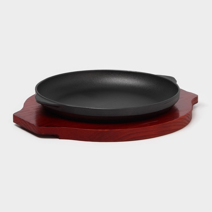 Сковорода чугунная «Круг», d=20,5 см, на деревянной подставке
