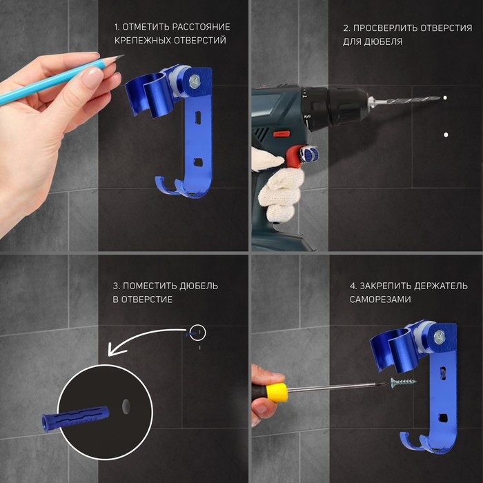 Держатель для душевой лейки ZEIN Z67, регулируемый с крючком, алюминий, синий