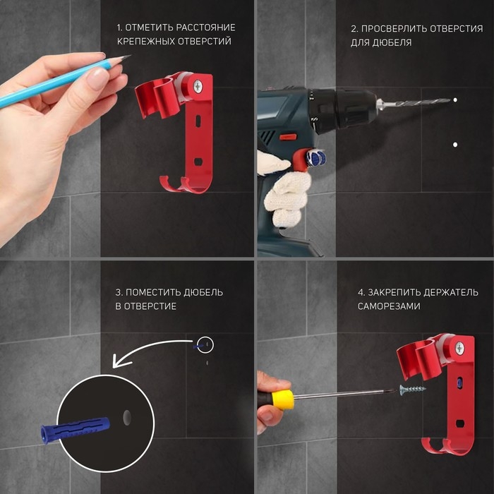 Держатель для душевой лейки ZEIN Z69, регулируемый с крючком, алюминий, красный