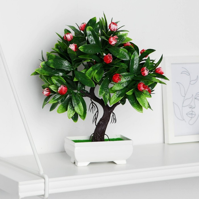 Бонсай в горшке "Деревце волнистые цветы" 10х24 см, микс