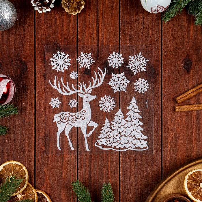 Наклейки на окна "Новогодние" Олень, снежинки, 26 х 21 см
