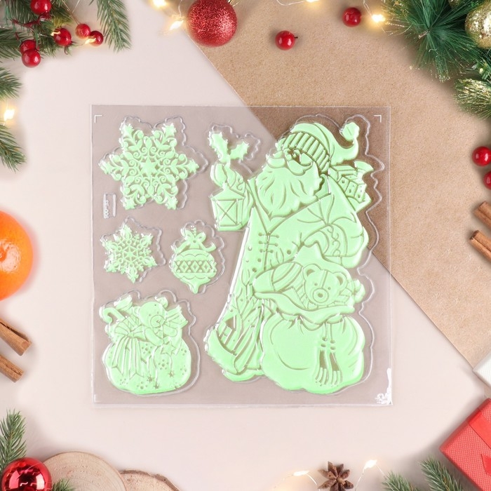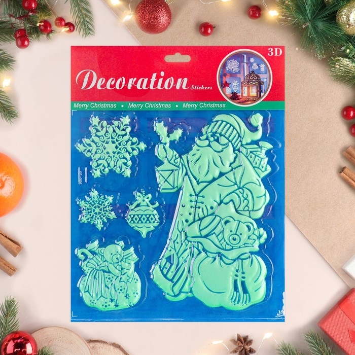 Наклейки на окна, светящиеся "Новогодние" Дед Мороз, 27 х 21 см