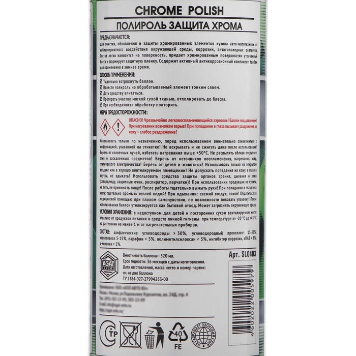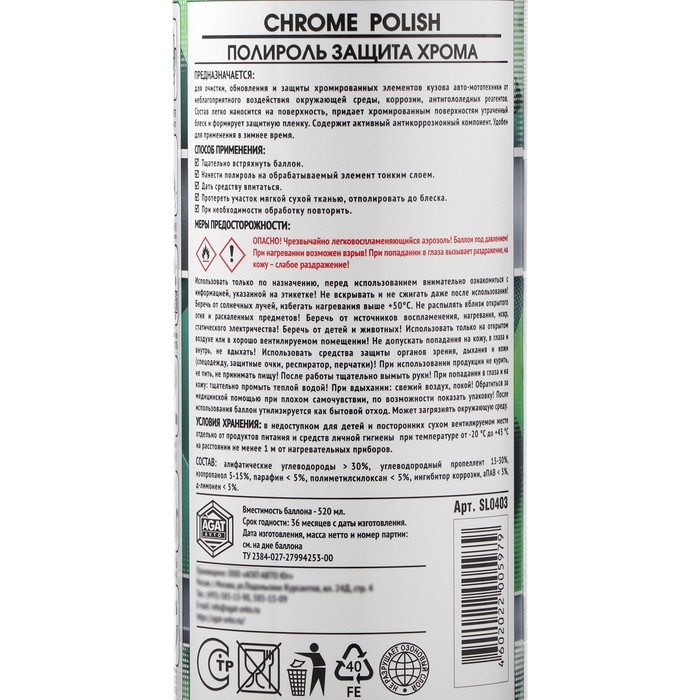 Полироль защита Хрома АГАТ, аэрозоль, 520 мл