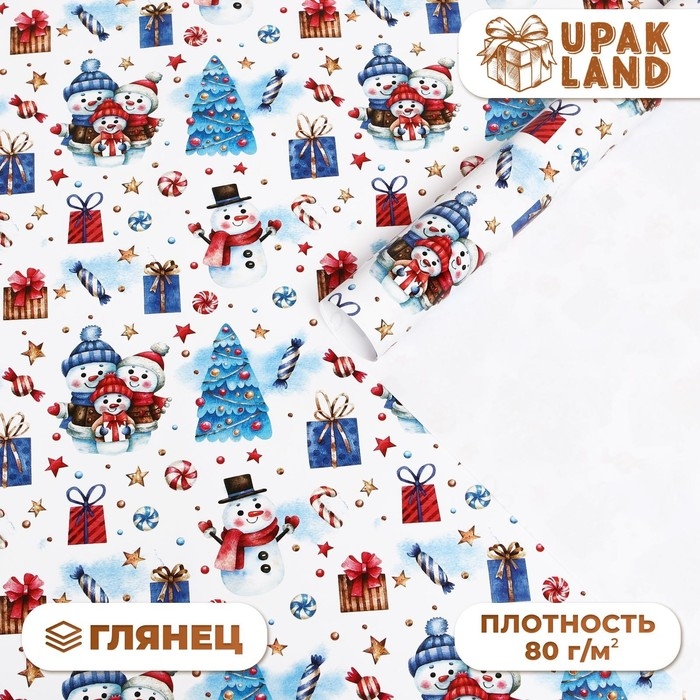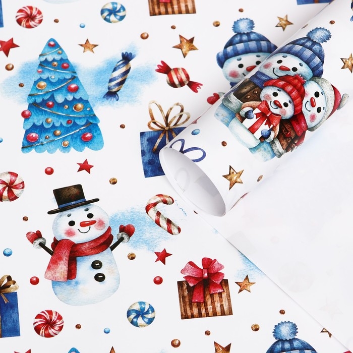 Новый год. Бумага упаковочная глянцевая "Зимушка", 70 х 100 см, 1 лист