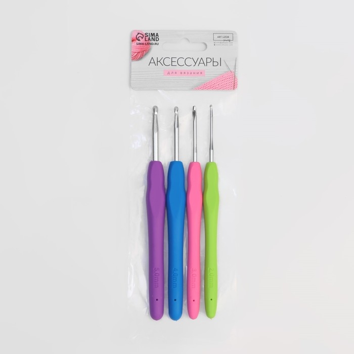 Набор крючков для вязания, d = 2-5 мм, 14 см, 4 шт, цвет разноцветный