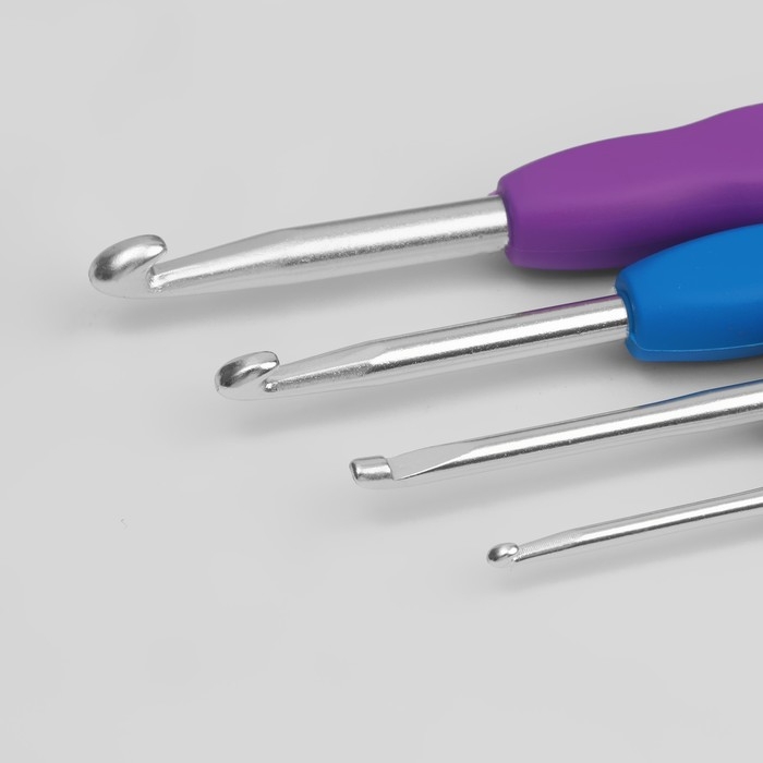 Набор крючков для вязания, с пластиковой ручкой, d = 2,5-5 мм, 14 см, 6 шт, цвет разноцветный