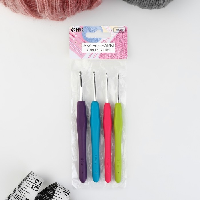 Набор крючков для вязания, d=2-3.5 мм, 14 см, 4 шт., разноцветный