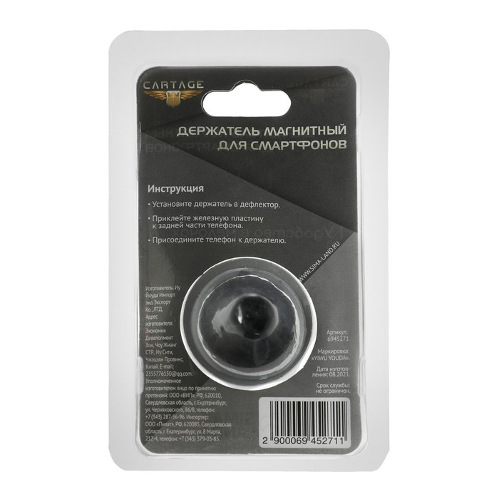 Держатель телефона CARTAGE, магнитный в дефлектор