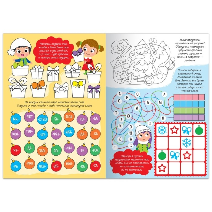 Многоразовая книга с маркером «Пиши-стирай. Новогодние задания», 12 стр.