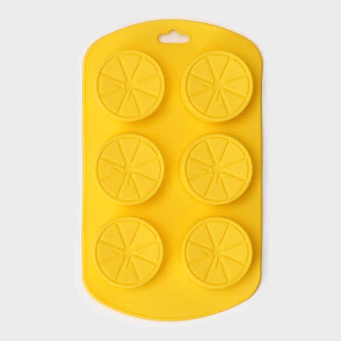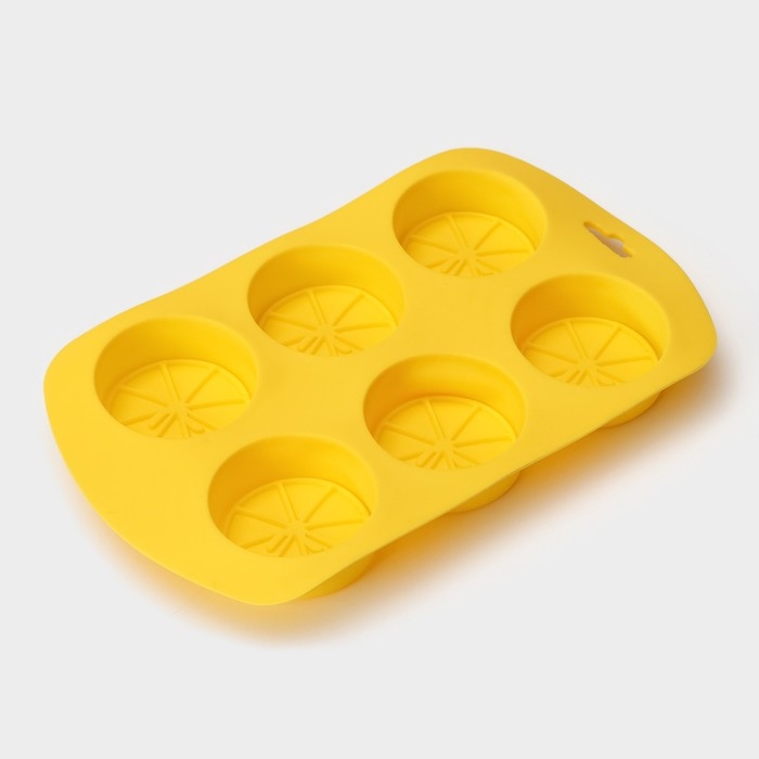 Форма для выпечки Доляна «Цитрус», силикон, 19×11×1,5 см, 6 ячеек (d=4 см), цвет жёлтый