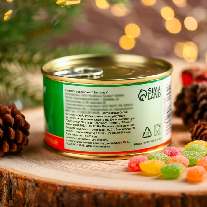 Монпансье "Сахарная икра", карамель леденцовая в консервной банке, 140 г