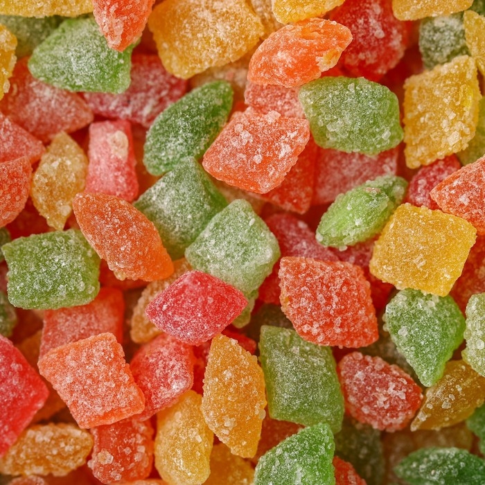 Состав: сахар белый кристаллический, патока крахмальная, регулятор кислотности - лимонная кислота (Е330), ароматизаторы: "Смородина", "Малина", "Абрикос", "Лимон", "Яблоко", красители (Е102, Е110, Е129).