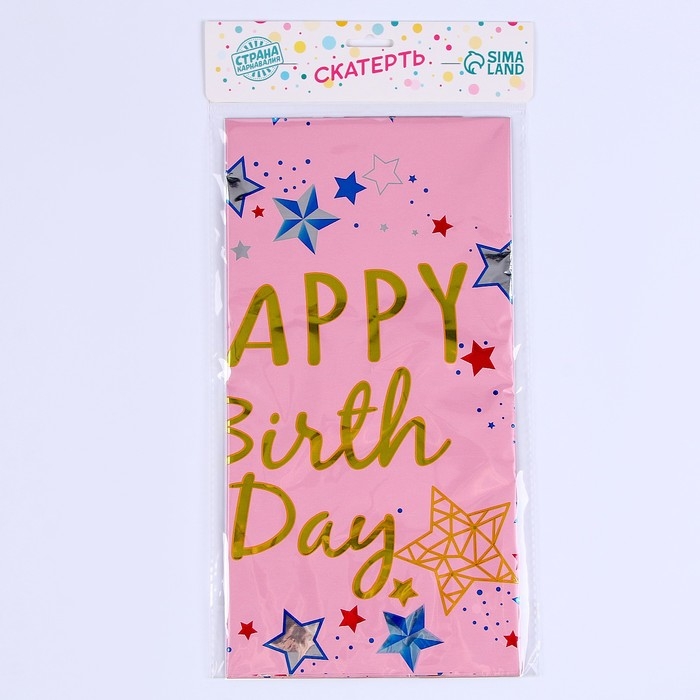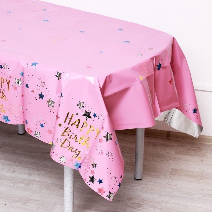 Скатерть «С Днём Рождения» 137×183 см, цвет розовый