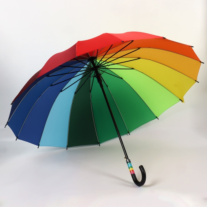 Зонт - трость полуавтоматический «Радуга», эпонж, 16 спиц, R = 61/70 см, D = 140 см, разноцветный