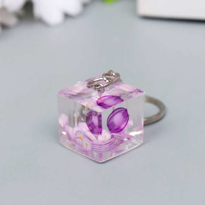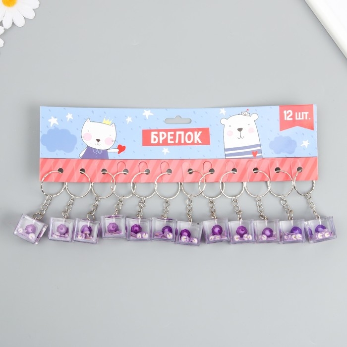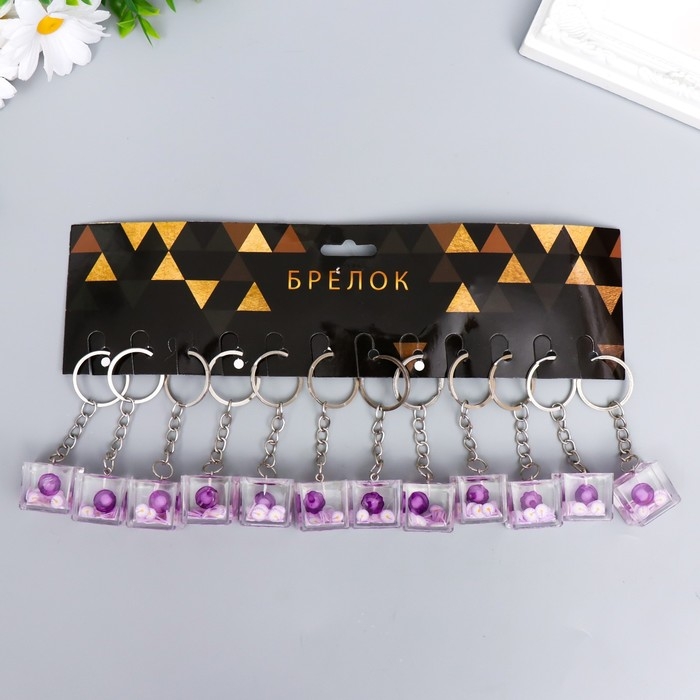 Брелок пластик "Бусинка в кубике" фиолет 2х2,2х2,2 см