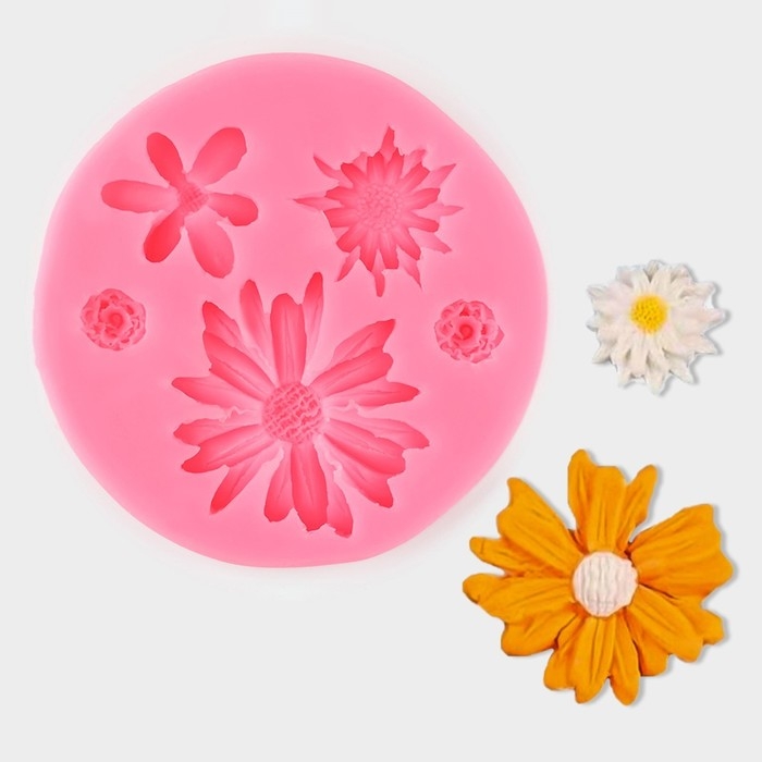 Молд «Цветочное ассорти», силикон, 10,5×10,5×1 см, цвет МИКС
