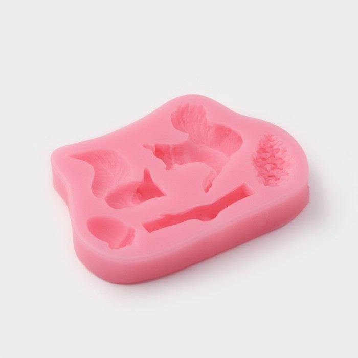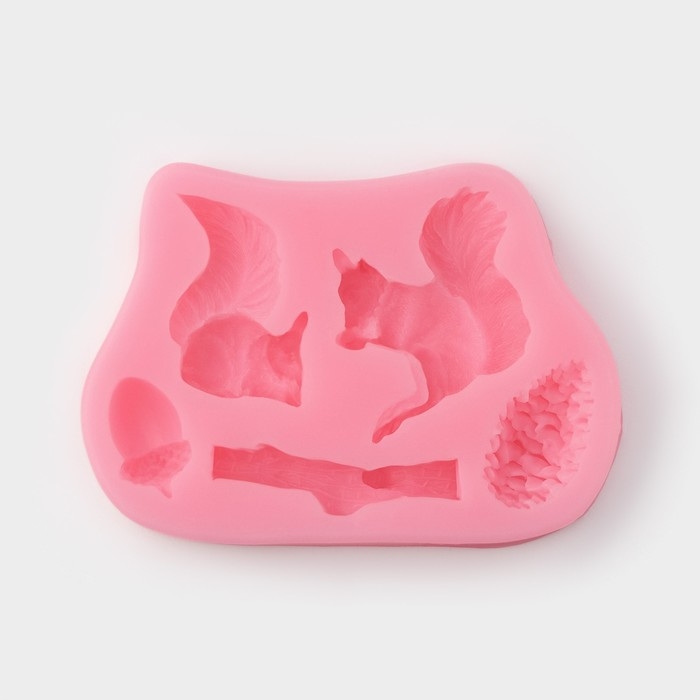 Молд Доляна «Белочка и орешки», силикон, 10×7×1,5 см, цвет розовый