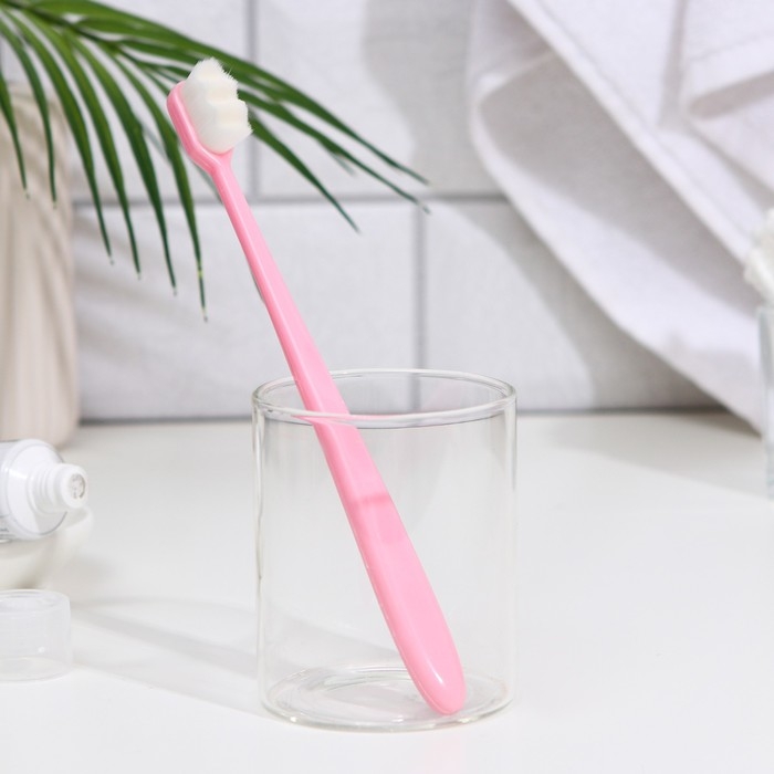 Сверхмягкая зубная щётка, 10000 щетинок, ребристая, розовая