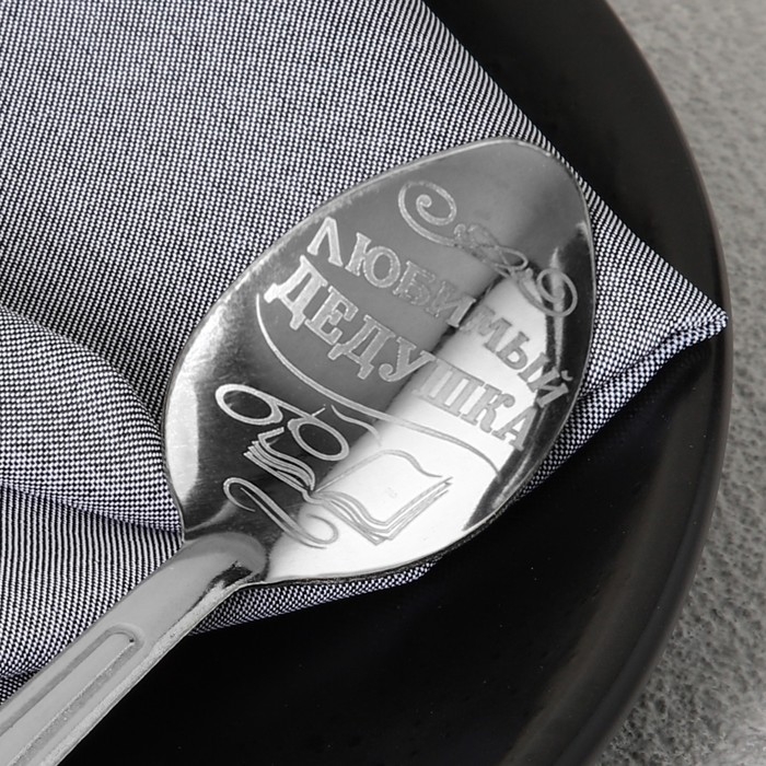 Ложка чайная с гравировкой «Любимый дедушка», на подарочной открытке, 3 х 14 см.
