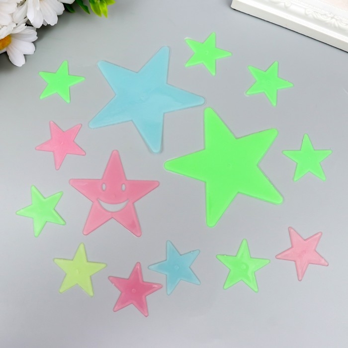 Наклейка фосфорная пластик "Звезды разных размеров" набор 14 шт 17х12 см