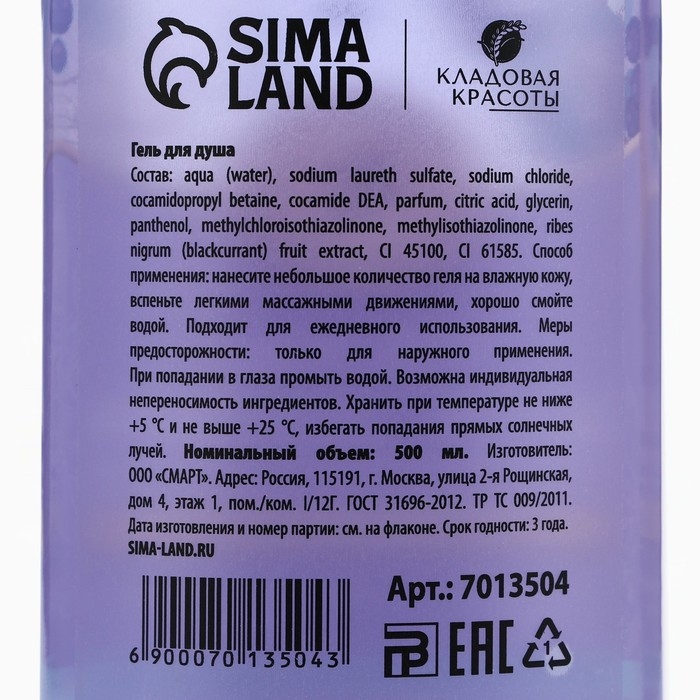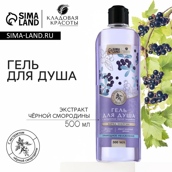 Гель для душа с экстрактом черной смородины, заряд энергии, 500 мл, КЛАДОВАЯ КРАСОТЫ