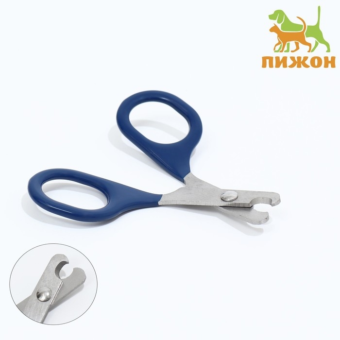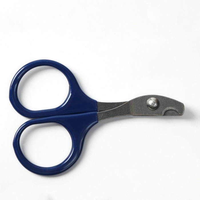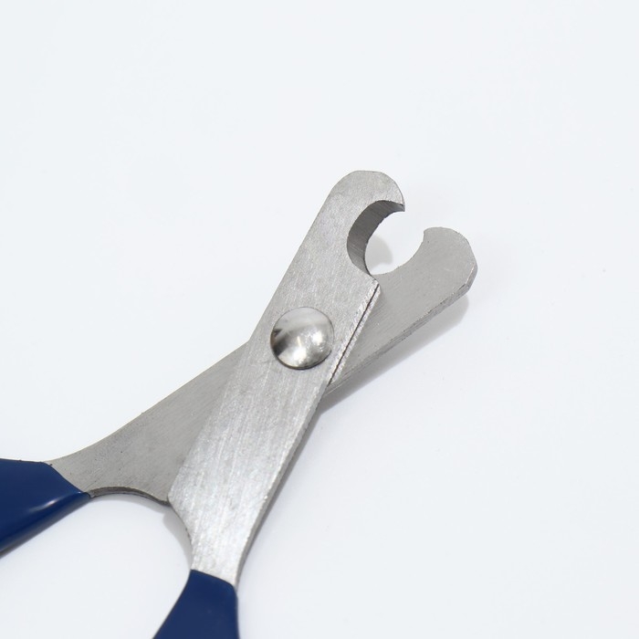 Ножницы-когтерезы изогнутые с прорезиненными ручками, отверстие 6 мм, тёмно-синие