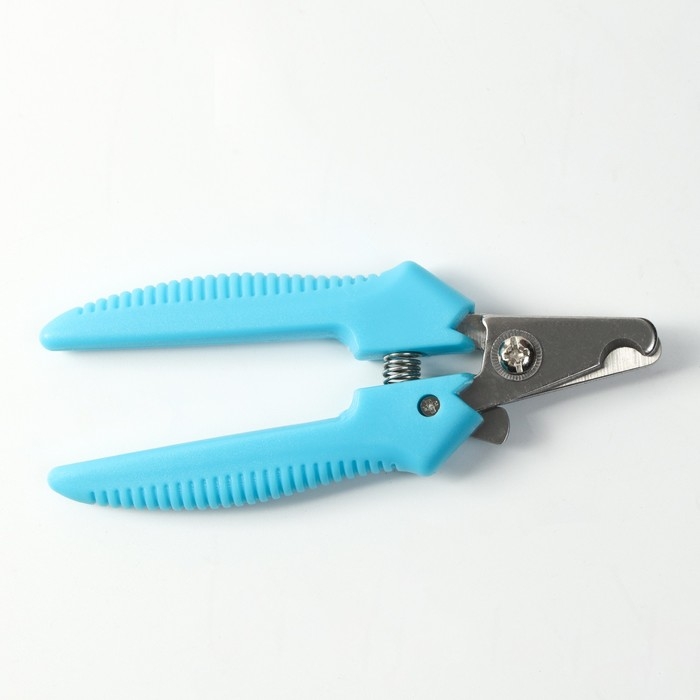Ножницы-когтерезы изогнутые с прорезиненными ручками, отверстие 6 мм, тёмно-синие