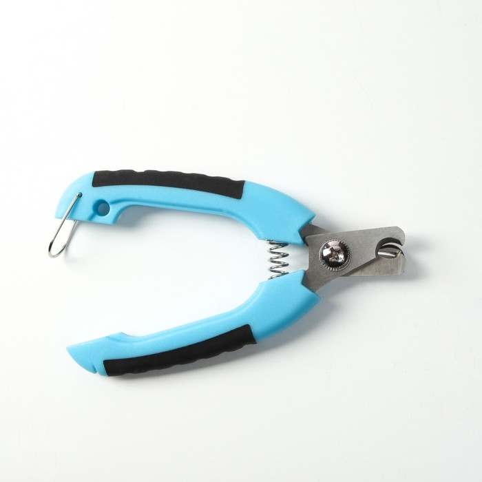 Ножницы-когтерезы изогнутые с прорезиненными ручками, отверстие 6 мм, тёмно-синие