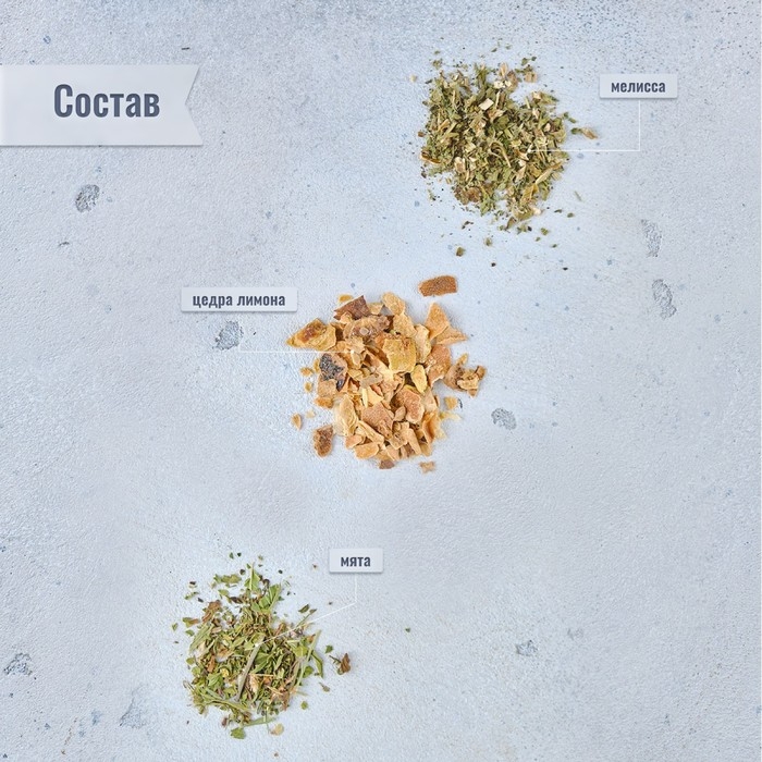 Состав: листья перечной мяты, сушеная цедра лимона.