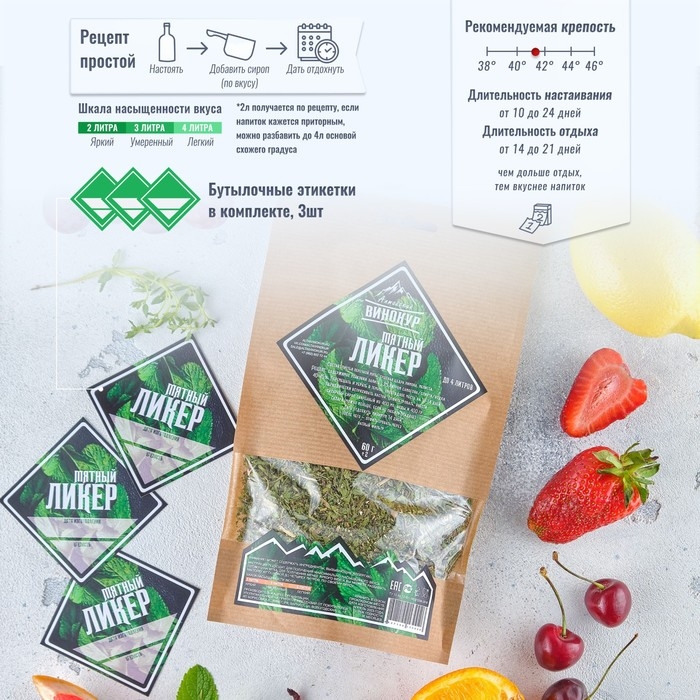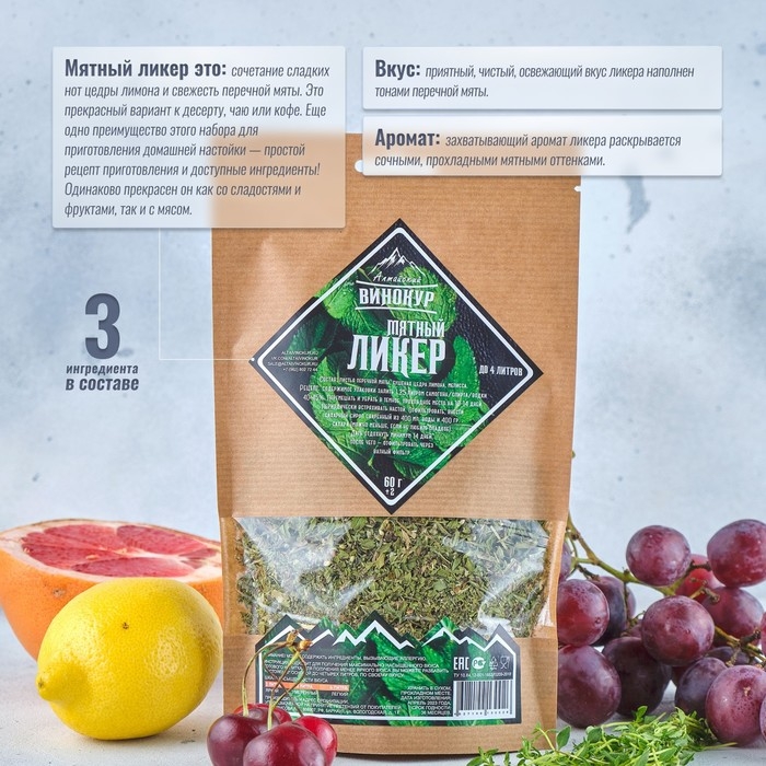 Набор из трав и специй для приготовления настойки "Мятный ликер" 60 гр