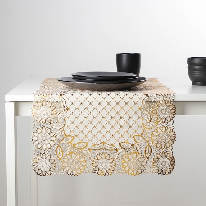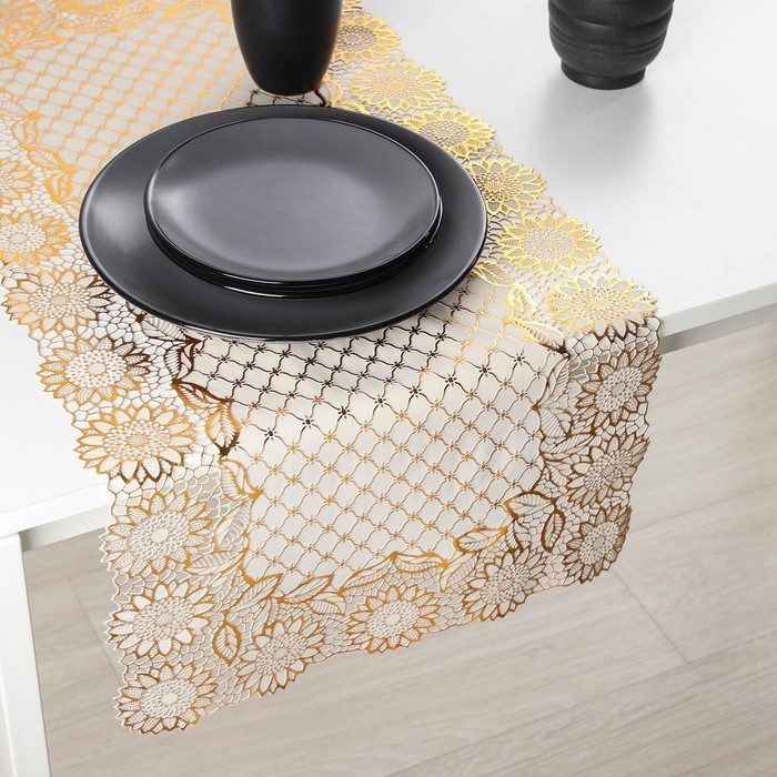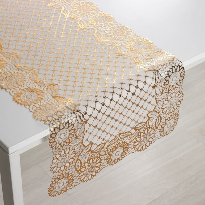 Салфетка сервировочная на стол «Букет», ажурная, 84×40 см, ПВХ, цвет золото