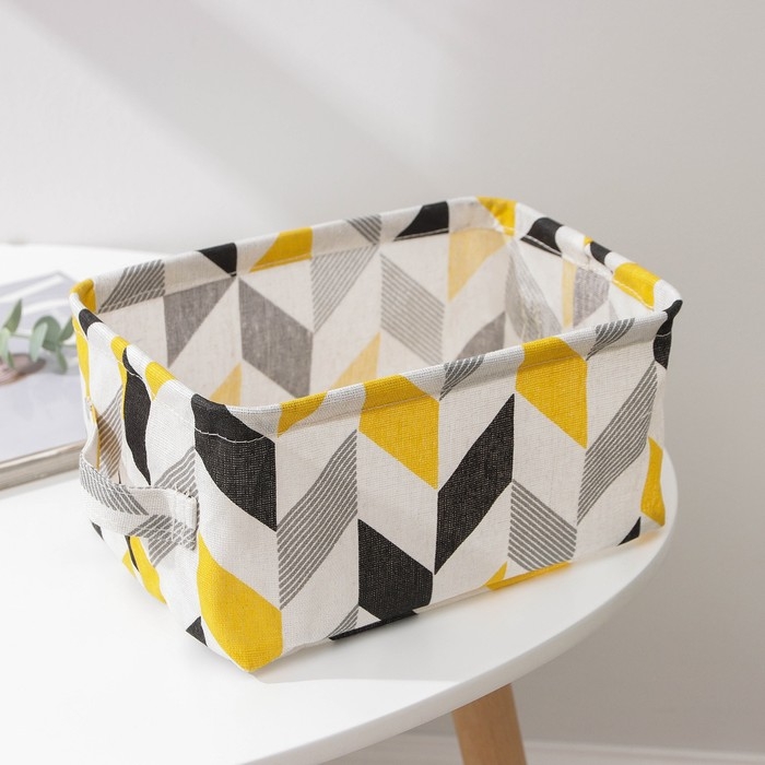 Корзинка для хранения с ручками Доляна «Зиг-заг», 23,5×17×12 см, цвет серо-жёлтый