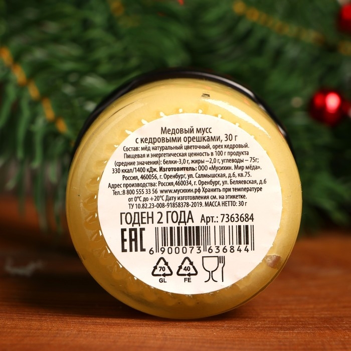 Новый год. Медовый мусс "С Новым годом", с кедровыми орешками, 30 г