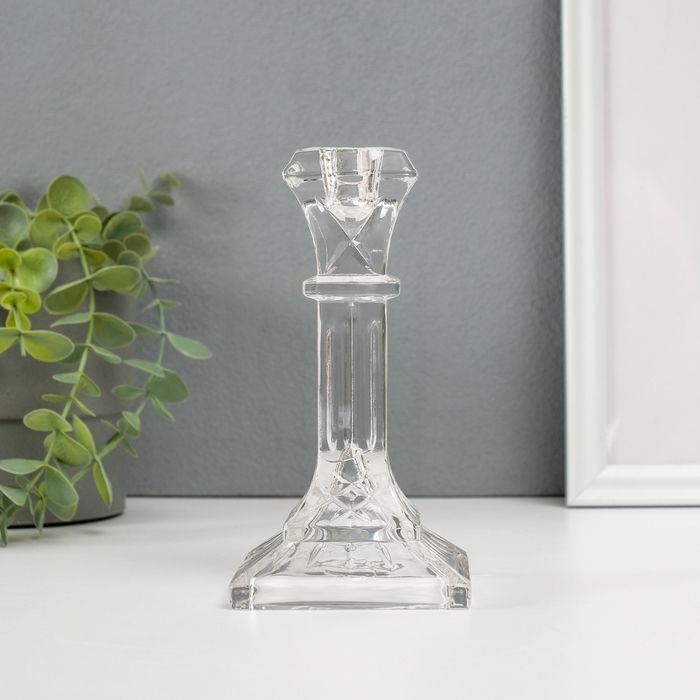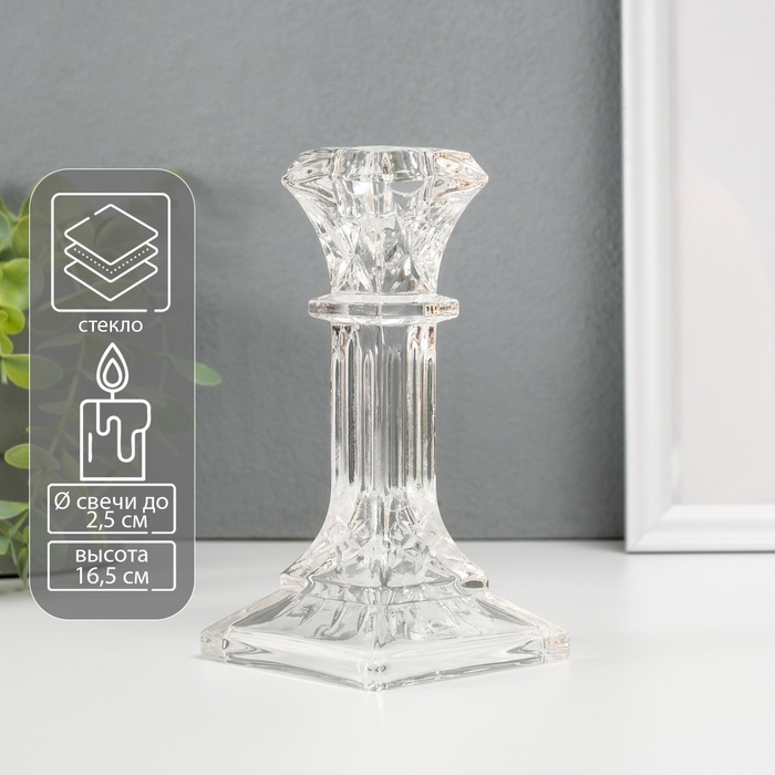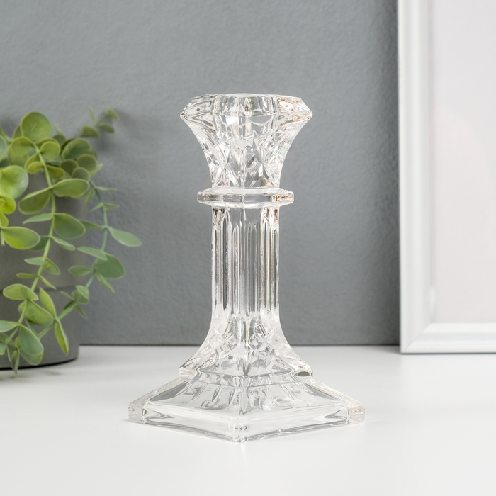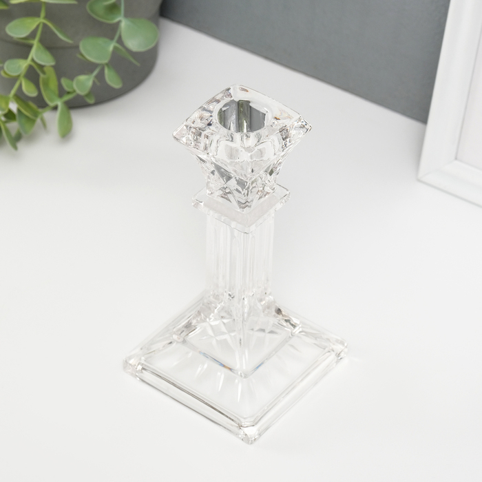 Подсвечник стекло на 1 свечу "Колонна с прямоугольная" прозрачный 16,5х8,3х8,3 см