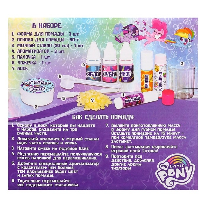 Набор для творчества My Little Pony «Помада для губ» научит девочку ухаживать за собой, а также поможет ребёнку провести увлекательный опыт.