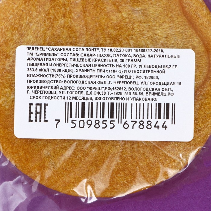 Сахарные соты - это двойное удовольствие: вкусная сладость и интересная игра. Попробуйте достать фигурку из круга, при этом не сломав ее. В случае неудачи - не расстраивайтесь, ведь у вас все равно остался прекрасный десерт!