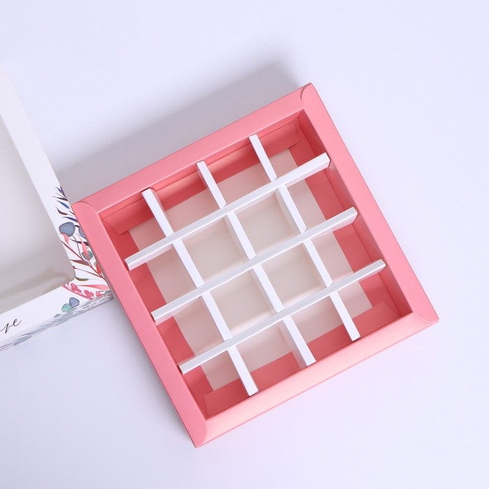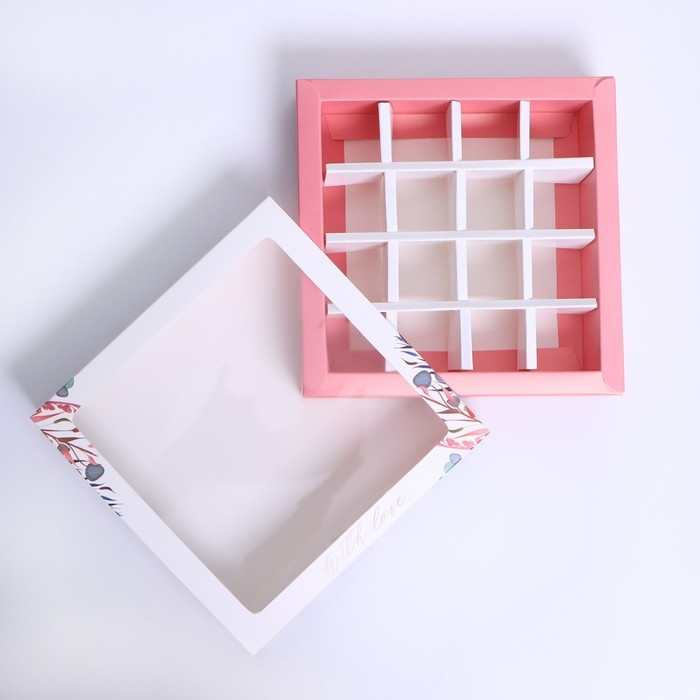 Коробка для конфет, кондитерская упаковка, 16 ячеек, With love, 17.7 х 17.7 х 3.8 см