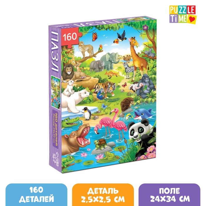 Пазл детский «Весёлый зоопарк», 160 деталей