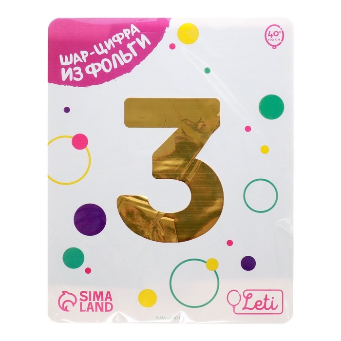 Шар фольгированный 40" «Цифра 3», цвет золото Slim
