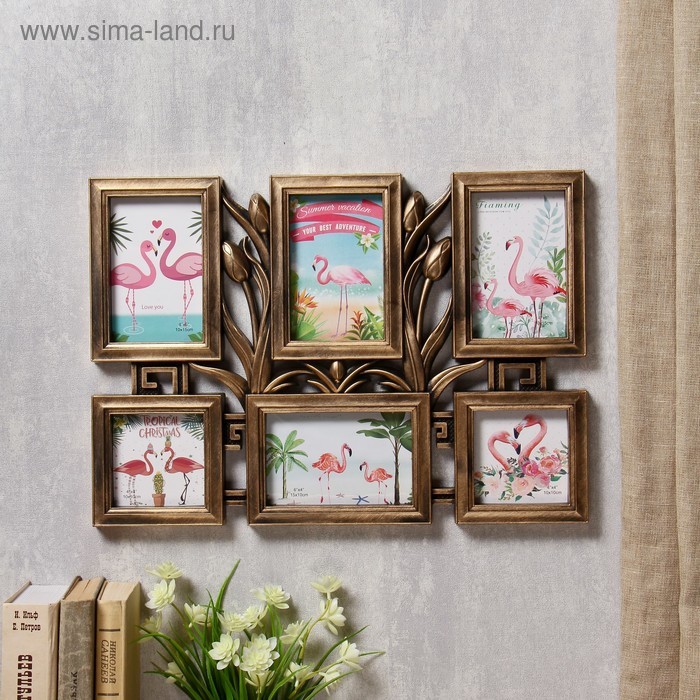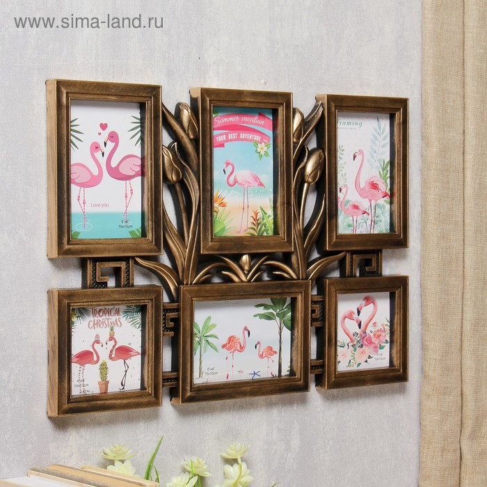 Фоторамка пластик на 6 фото 10х10, 10х15 см "Тюльпаны" т.золото 33,5х47 см