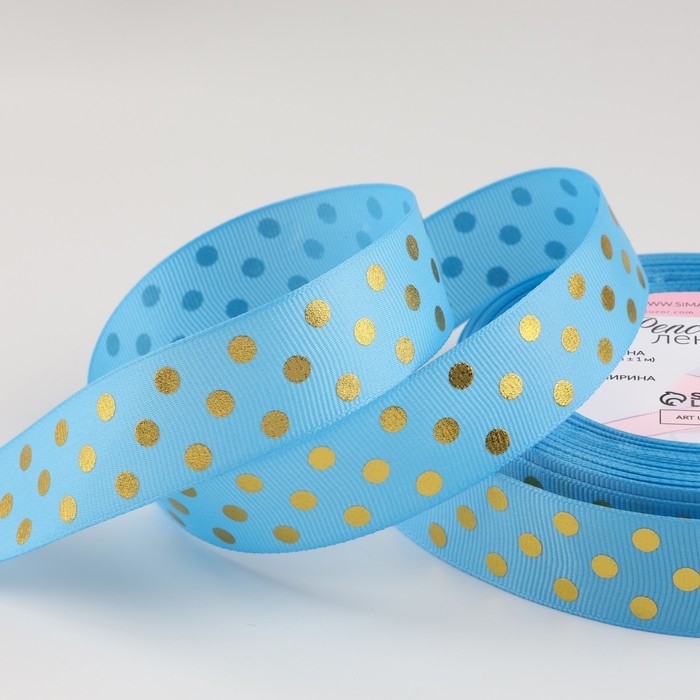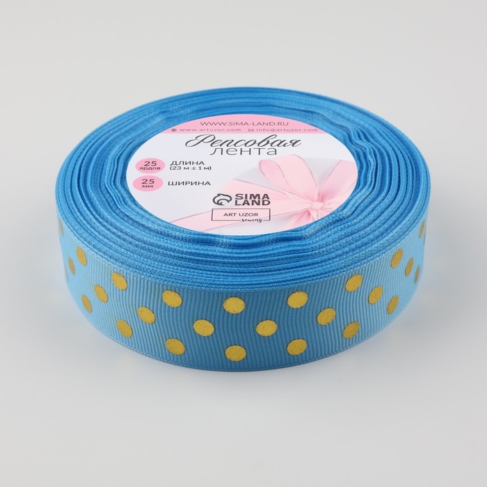 Лента репсовая с тиснением «Горох», 25 мм, 23 ± 1 м, цвет голубой №184