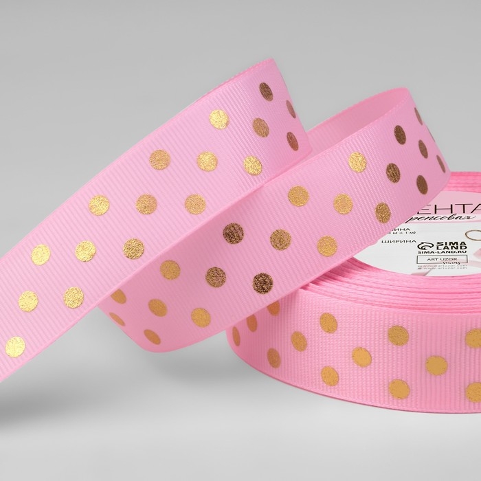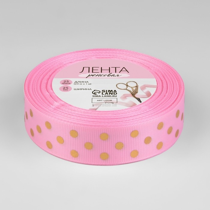 Лента репсовая с тиснением «Горох», 25 мм, 23 ± 1 м, цвет розовый №004