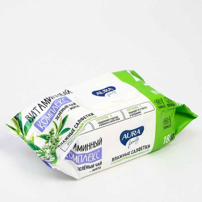 Влажные салфетки Aura family с антибактериальным эффектом big-pack 180 шт.