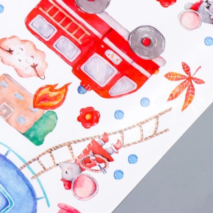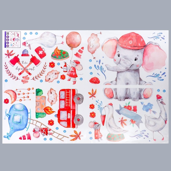Наклейка пластик интерьерная цветная "Слонёнок пожарный" 60х90 см